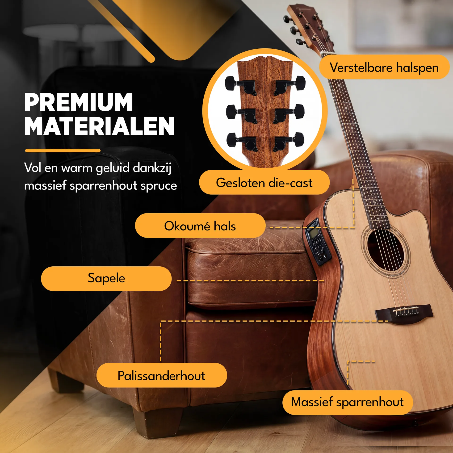 - Premium houtsoorten en materialen