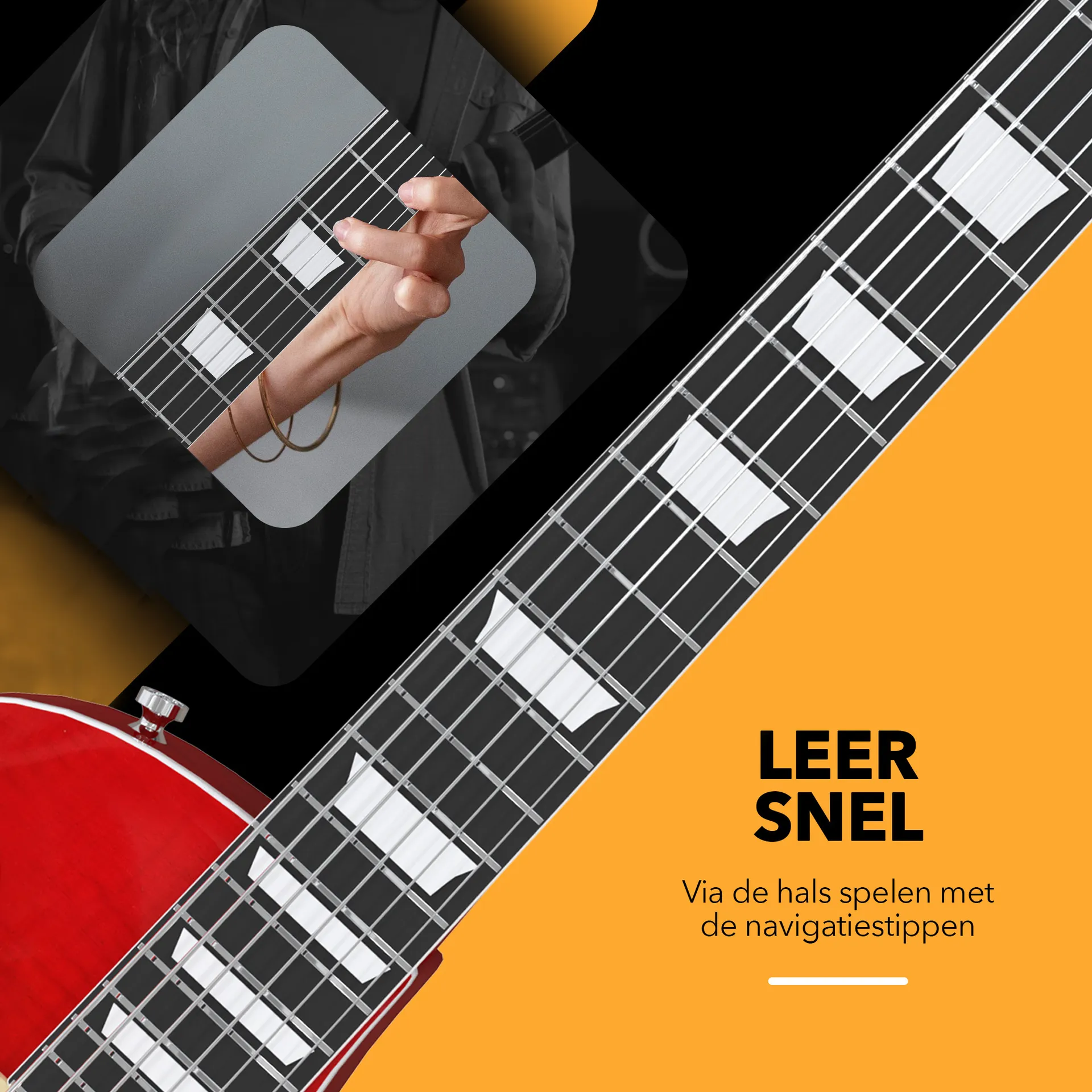 Zeker als beginnende gitarist kan het even zoeken zijn om de juiste noten op de gitaar te vinden. De nek van deze gitaar is voorzien van 10 navigatiestippen welke enorm helpen om jouw weg te vinden en de juiste noten te leren herkennen.