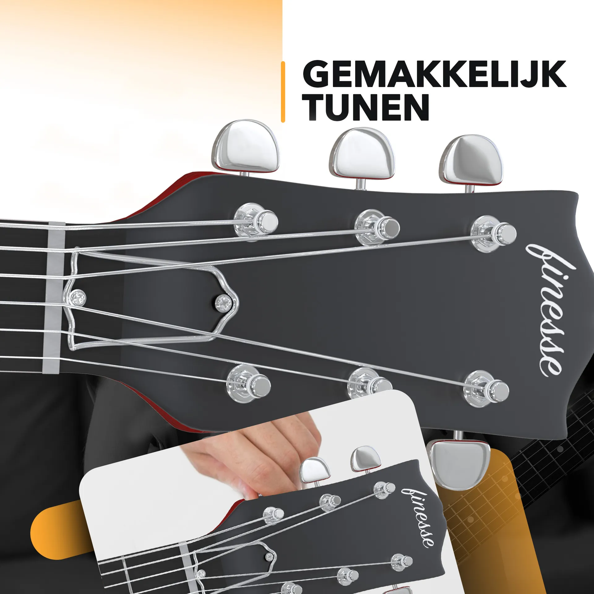 Alles om te beginnen én om te groeien als muzikant, daar staan we bij Finesse voor. Daarom ontvang je bij aanschaf van een Finesse gitaar de Basiscursus Gitaarspelen via de Finesse Academy. Deze cursus is speciaal ontworpen om je op een leuke en eenvoudige manier vertrouwd te maken met de eerste akkoorden, ritmes, technieken en liedjes. Zo zet je moeiteloos je eerste stappen als gitarist.