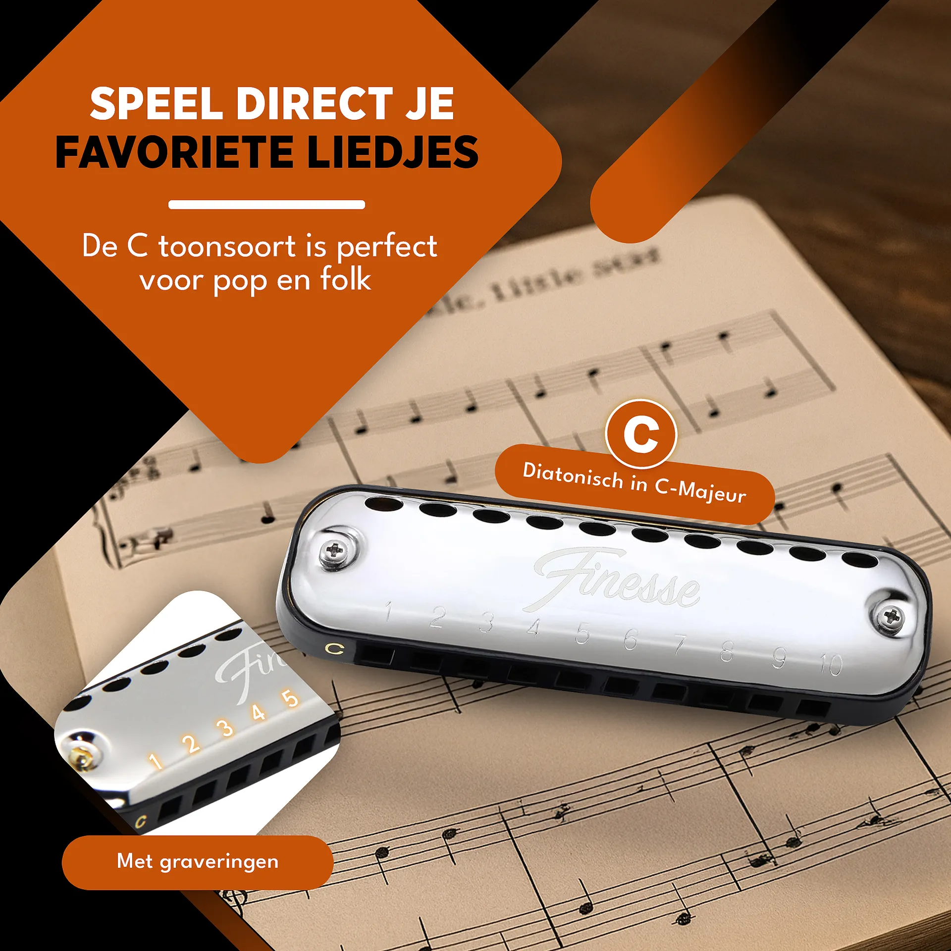 - Diatonisch in C-majeur: ideaal voor pop, blues en folk
